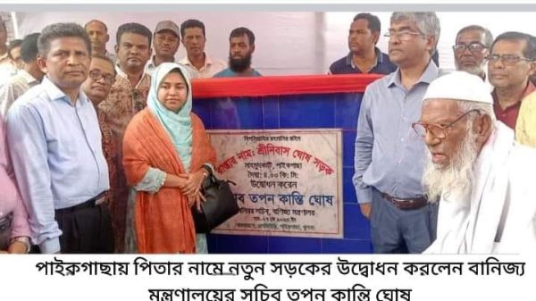 শেখ নাদীর শাহ্:: খুলনার পাইকগাছায় পিতা শ্রীনিবাস ঘোষের নামে নতূন সড়কের উদ্বোধন করেছেন বানিজ্য মন্ত্রণালয়ের সিনিয়র সচিব তপন কান্তি ঘোষ। উপজেলার হরিঢালীর গ্রামের বাড়ী মাহমুদকাঠি মোড় হতে বালিয়া খেঁয়াঘাট পর্যন্ত