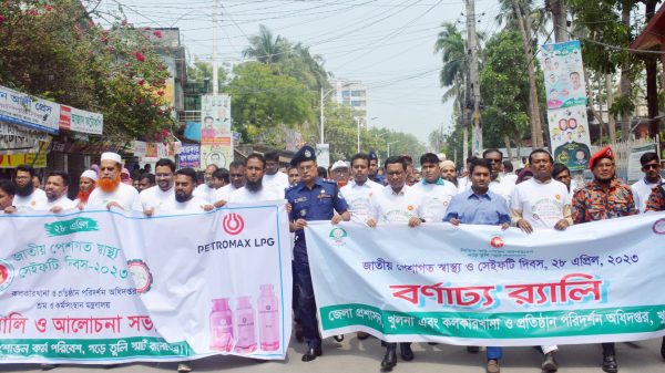 খুলনা প্রতিনিধি: বর্ণাঢ্য র্যালি, আলোচনা সভাসহ বিভিন্ন কর্মসূচির মধ্য দিয়ে আজ (শুক্রবার) খুলনায় জাতীয় পেশাগত স্বাস্থ্য ও সেইফটি দিবস পালিত হয়। দিবসটির এবারের প্রতিপাদ্য ‘নিশ্চিত করি শোভন কর্মপরিবেশ, গড়ে তুলি