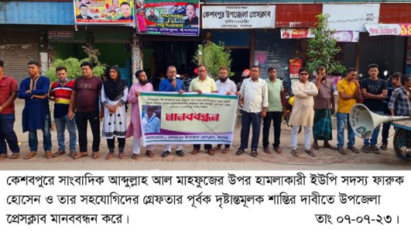 কেশবপুর (যশোর) প্রতিনিধি:: কেশবপুর উপজেলা প্রেসক্লাবের যুগ্ম সম্পাদক, জয়যাত্রা টিভির যশোর জেলা প্রতিনিধি ও প্রজন্ম ৭১ পত্রিকার সাংবাদিক আব্দুল্লাহ আল মাহফুজের উপর হামলার প্রতিবাদে এবং হামলাকারী ইউপি সদস্য ফারুক হোসেন