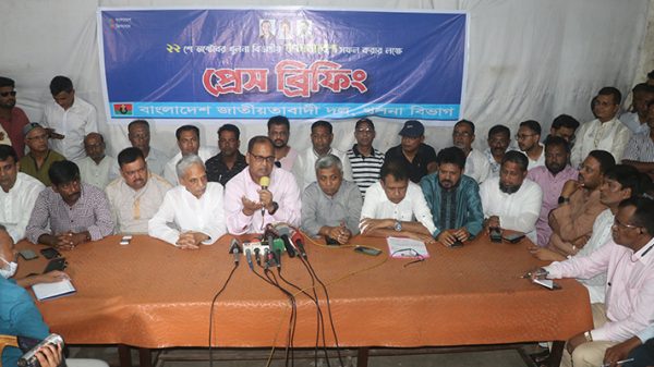 খুলনা অফিস: আগামী ২২ অক্টোবর বিএনপি’র খুলনা বিভাগীয় গণসমাবেশে যোগ দেয়ার ঘোষণা দিয়েছেন খুলনা মহানগর বিএনপির সাবেক সভাপতি নজরুল ইসলাম মঞ্জু।বৃহস্পতিবার (২০ অক্টোবর) খুলনা প্রেসক্লাবে সংবাদ সম্মেলন করে তিনি এই