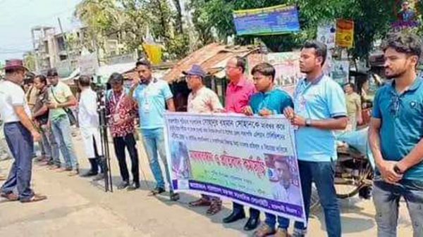 নিজস্ব প্রতিবেদক:: সারাদেশে সাংবাদিক নির্যাতন ও মিথ্যা মামলায় হয়রাণির প্রতিবাদে রাজশাহীর পুঠিয়ায় বিএমএসএস’র উদ্যোগে মানববন্ধন ও প্রতিবাদ সভা অনুষ্ঠিত হয়েছে। সাংবাদিক সোহানুর রহমান সোহানকে মারধর করে হাতুড়ি দিয়ে পিটিয়ে পা